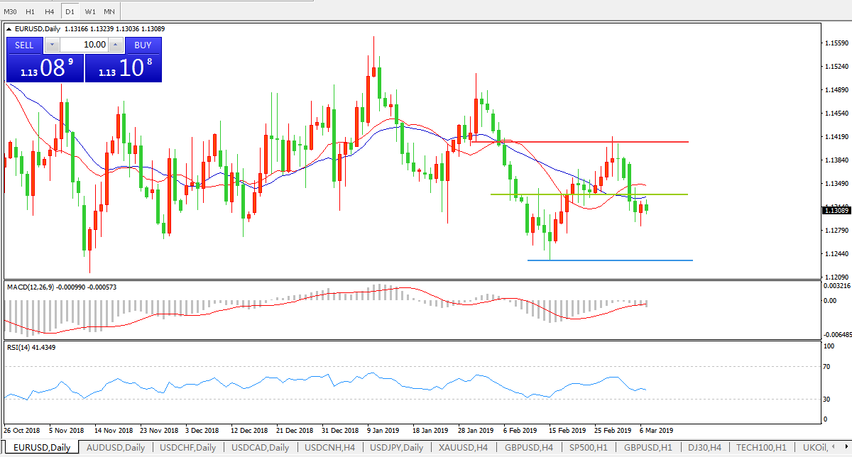 基本面分析:日内欧洲央行3月利率决议料按兵不动,不过货币政策立场料偏向鸽派,调降2019年经济增长预期至1.7%,并可能调降整体及核心通胀,在欧元区宏观经济表现令人失望的背景下,欧洲央行将维持当前的宽松货币政策,3月-6月间可能实施新一轮TLTRO。德拉基释放政策信号的鸽派程度有多浓厚与欧美息息相关,一旦欧元兑美元跌破1.12关口,恐进一步深跌。