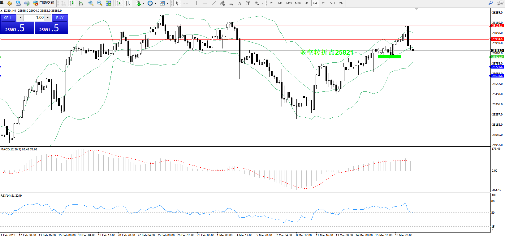 道琼斯工业收跌26.72点,跌幅0.10%,报25887.38点。因投资者对美国联邦储备理事会(FED/美联储)料将保持其鸽派政策立场的乐观情绪,被有关中美贸易谈判另生枝节所抵消。金融股对美国三大股指构成压力,在彭博报导,中国在贸易谈判中抵制的要求后,金融股回吐涨幅。