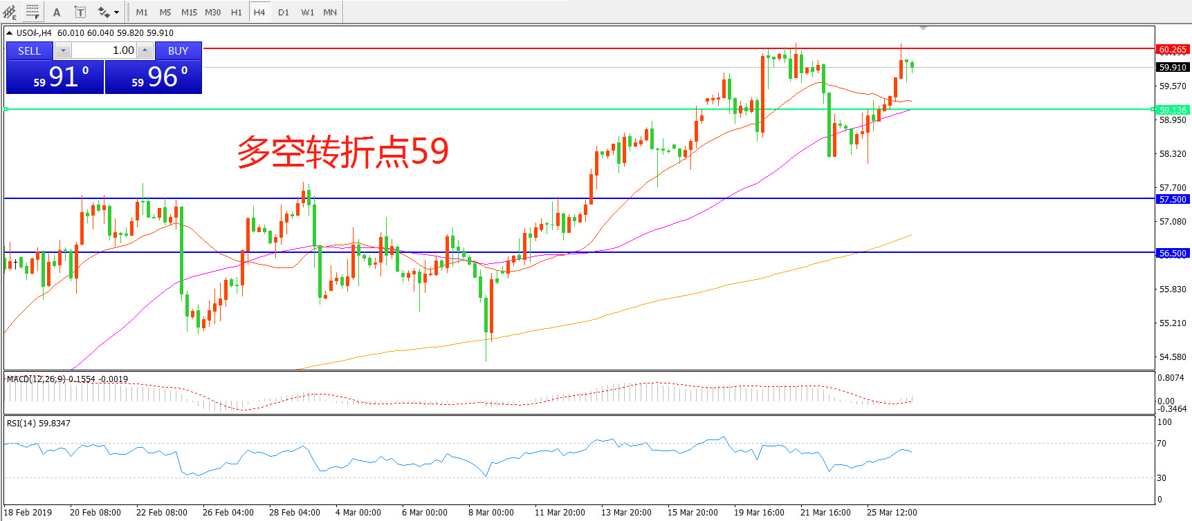 交易策略:在59.00 之上看涨,目标60.00 62.00