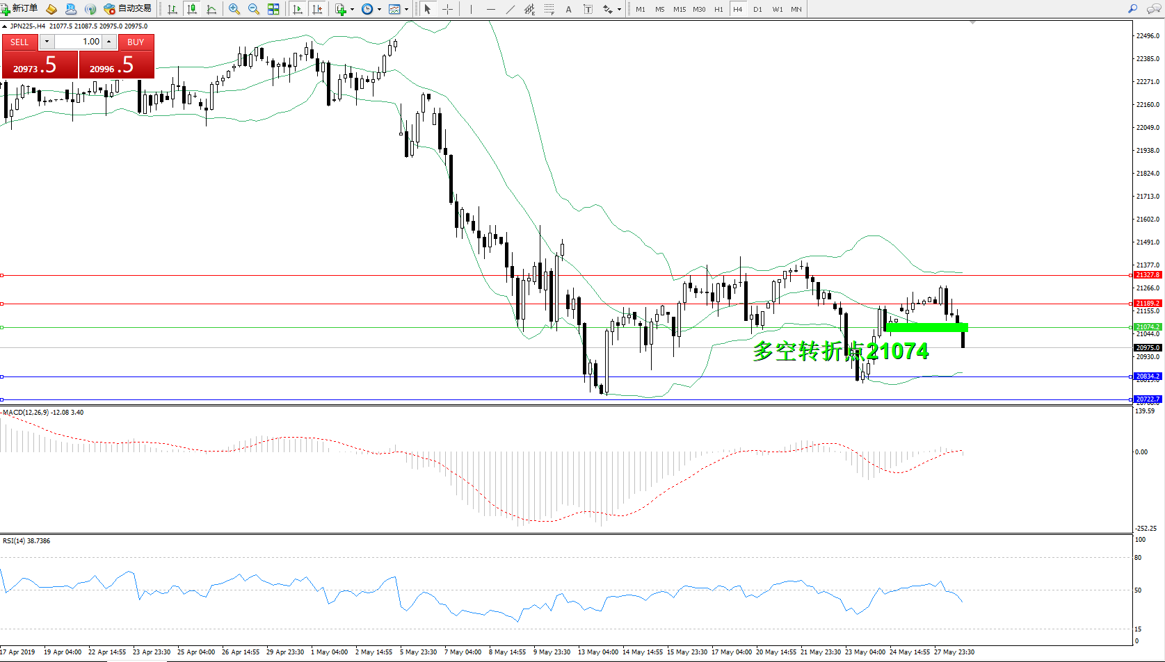 技术点评:维持布林带宽幅震荡走势,跌势没有结束,关注布林带中轨附近节点,MACD指标处于0轴线附近持续震荡,RSI指标再次跌破50均衡线进入空头区域下移;