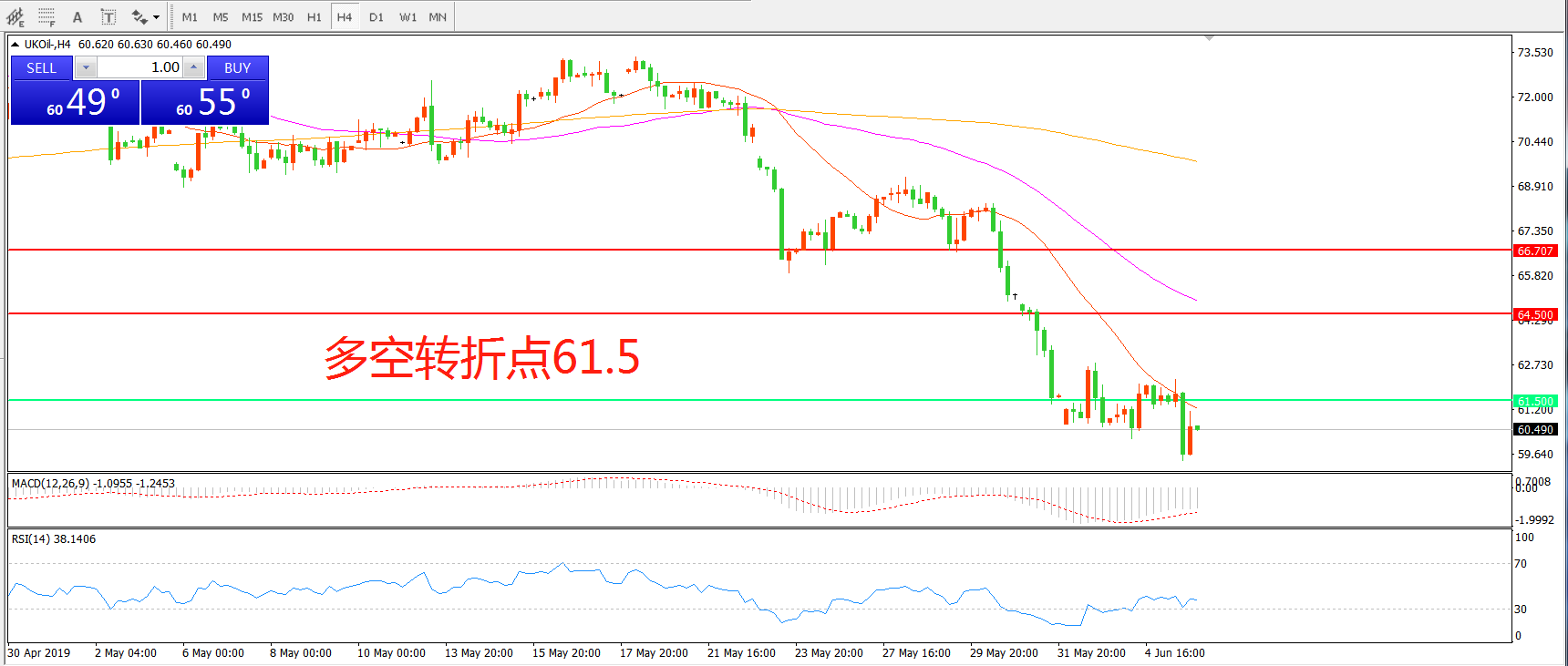 交易策略: 在61.50之下看跌,目标57.50 53.00