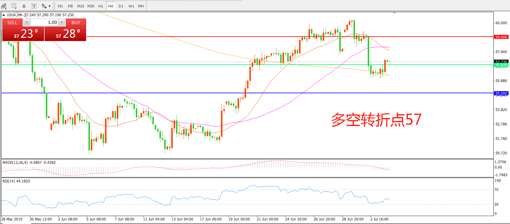 交易策略:在57.00 之下看跌,目标55.00 51.50