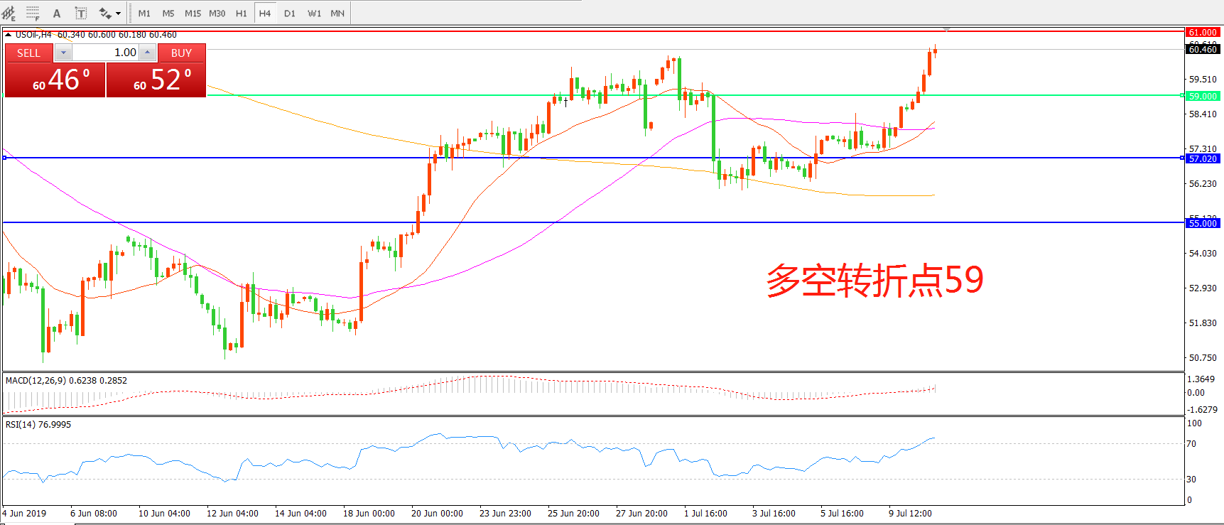 多空转折点:59.00