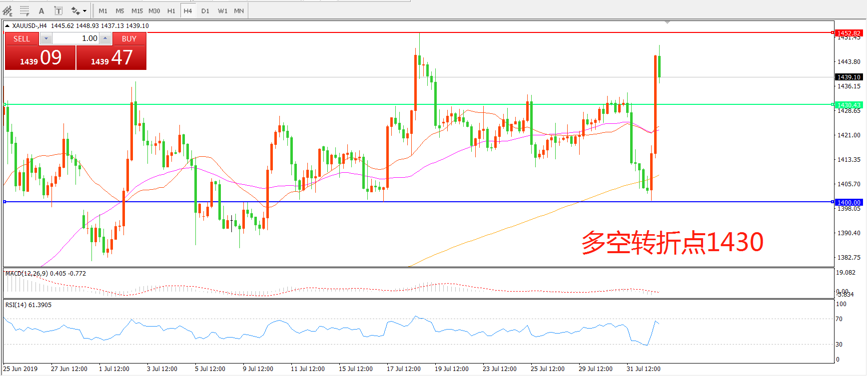 交易策略:在1430.00之上看涨,目标1450.00 1475.00