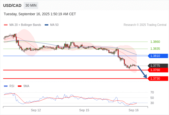 在 1.3810 之下,看跌,目标价位为 1.3760 ,然后为 1.3730 。