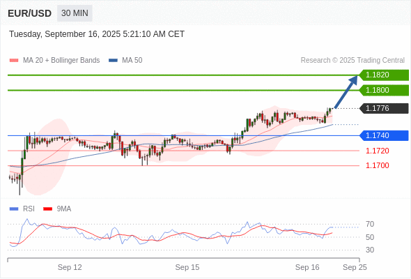 在 1.1740 之上,看涨,目标价位为 1.1800 ,然后为 1.1820 。
