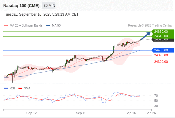 在 24450.00 之上,看涨,目标价位为 24610.00 ,然后为 24660.00 。