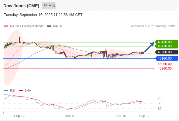 在 46160.00 之上,看涨,目标价位为 46410.00 ,然后为 46490.00 。