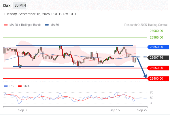 在 23850.00 之下,看跌,目标价位为 23550.00 ,然后为 23400.00 。