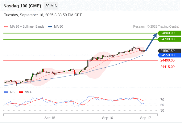 交易策略: 在 24550.00 之上,看涨,目标价位为 24730.00 ,然后为 24800.00 。