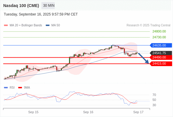 在 24635.00 之下,看跌,目标价位为 24490.00 ,然后为 24415.00 。