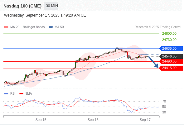 在 24635.00 之下,看跌,目标价位为 24490.00 ,然后为 24415.00 。