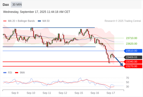 在 23510.00 之下,看跌,目标价位为 23340.00 ,然后为 23270.00 。