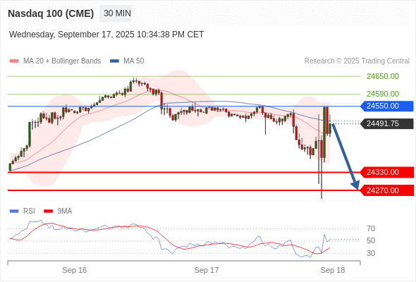 在 24550.00 之下,看跌,目标价位为 24330.00 ,然后为 24270.00 。
