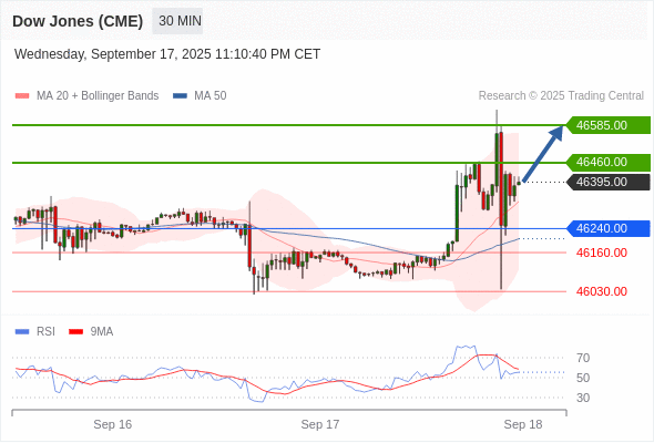 在 46240.00 之上,看涨,目标价位为 46460.00 ,然后为 46585.00 。