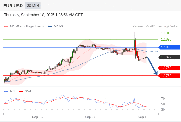 交易策略: 在 1.1860 之下,看跌,目标价位为 1.1780 ,然后为 1.1750 。