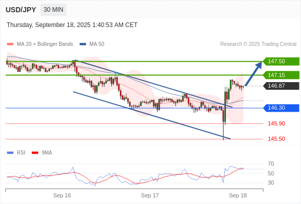 在 146.30 之上,看涨,目标价位为 147.15 ,然后为 147.50 。