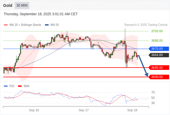 在 3675.00 之下,看跌,目标价位为 3645.00 ,然后为 3630.00 。