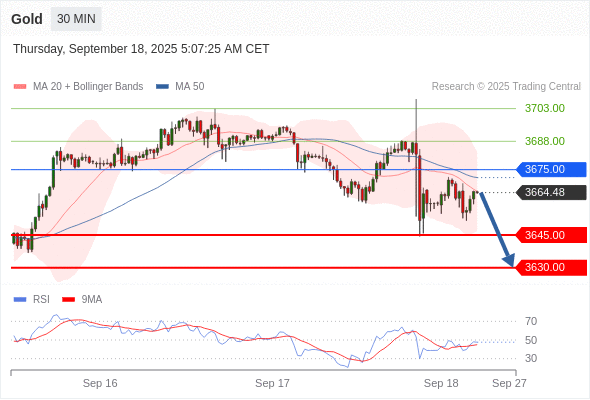 在 3675.00 之下,看跌,目标价位为 3645.00 ,然后为 3630.00 。