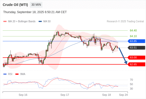 交易策略: 在 63.85 之下,看跌,目标价位为 63.00 ,然后为 62.65 。