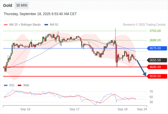 交易策略: 在 3675.00 之下,看跌,目标价位为 3645.00 ,然后为 3630.00 。