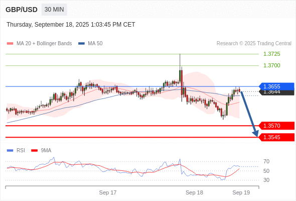 交易策略: 在 1.3655 之下,看跌,目标价位为 1.3570 ,然后为 1.3545 。