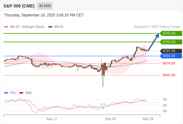 交易策略: 在 6694.00 之上,看涨,目标价位为 6732.00 ,然后为 6755.00 。