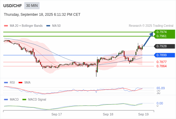 美元/瑞郎 当日内 : 看涨,当 0.7899 为支撑位。