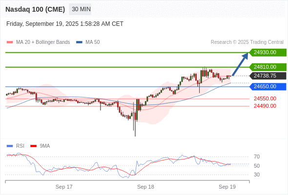 在 24650.00 之上,看涨,目标价位为 24810.00 ,然后为 24930.00 。