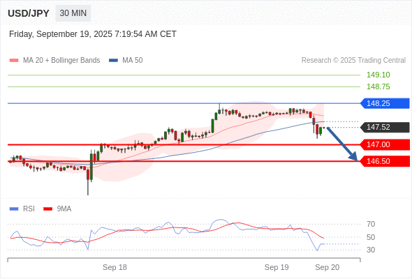 在 148.25 之下,看跌,目标价位为 147.00 ,然后为 146.50 。