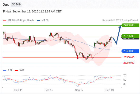 交易策略: 在 23480.00 之上,看涨,目标价位为 23785.00 ,然后为 24000.00 。