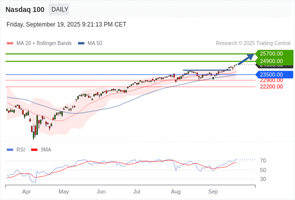 在 23500.00 之上,看涨,目标价位为 24900.00 ,然后为 25700.00 。