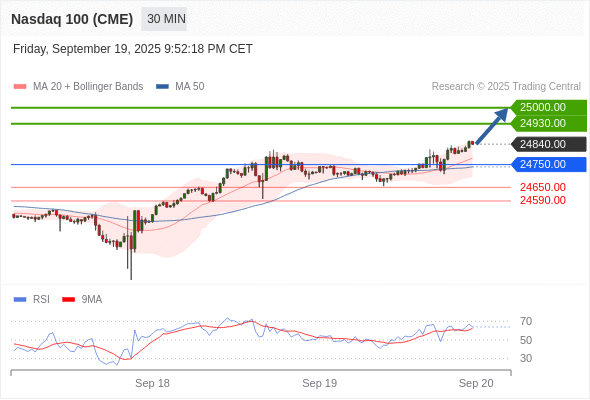 交易策略: 在 24750.00 之上,看涨,目标价位为 24930.00 ,然后为 25000.00 。