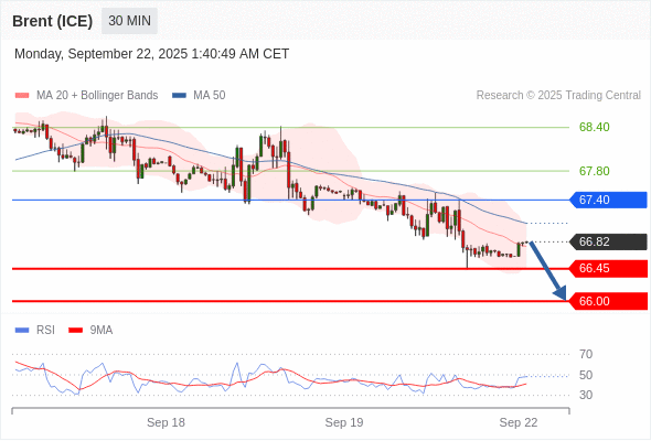 交易策略: 在 67.40 之下,看跌,目标价位为 66.45 ,然后为 66.00 。