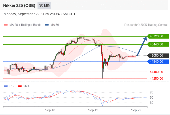 在 44840.00 之上,看涨,目标价位为 45440.00 ,然后为 45720.00 。