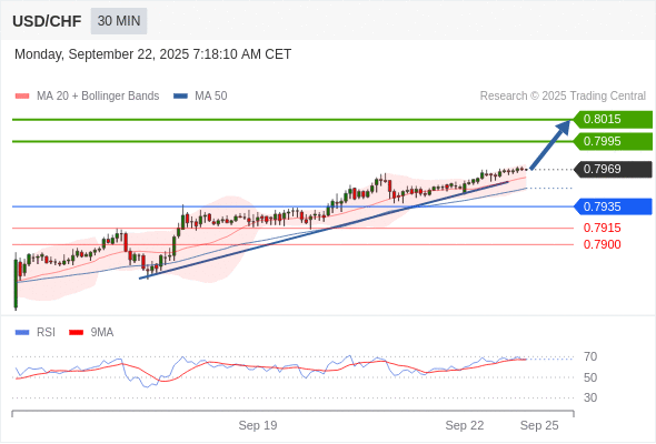 在 0.7935 之上,看涨,目标价位为 0.7995 ,然后为 0.8015 。