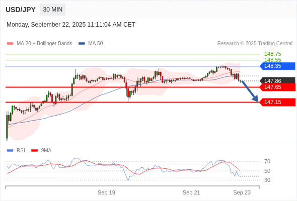 在 148.35 之下,看跌,目标价位为 147.65 ,然后为 147.15 。