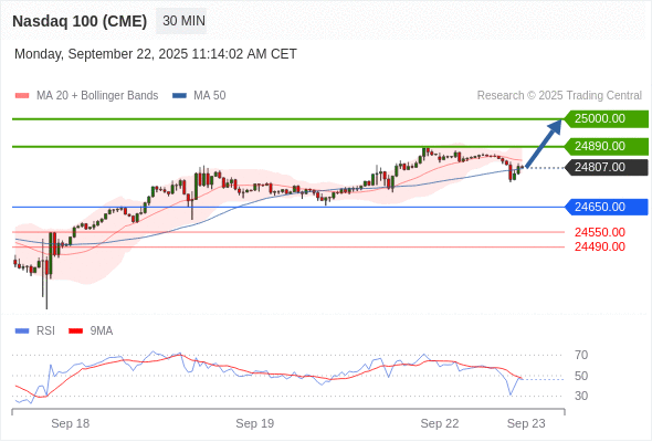 在 24650.00 之上,看涨,目标价位为 24890.00 ,然后为 25000.00 。