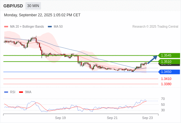 在 1.3450 之上,看涨,目标价位为 1.3510 ,然后为 1.3545 。