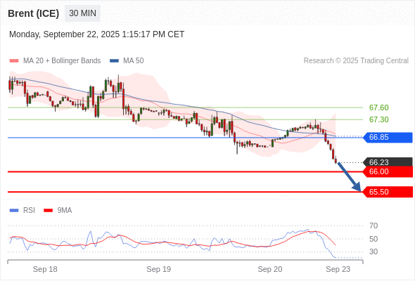 交易策略: 在 66.85 之下,看跌,目标价位为 66.00 ,然后为 65.50 。
