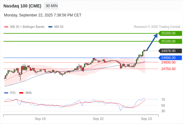 交易策略: 在 24890.00 之上,看涨,目标价位为 25000.00 ,然后为 25100.00 。