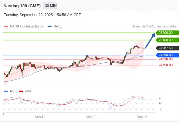 在 24890.00 之上,看涨,目标价位为 25100.00 ,然后为 25200.00 。