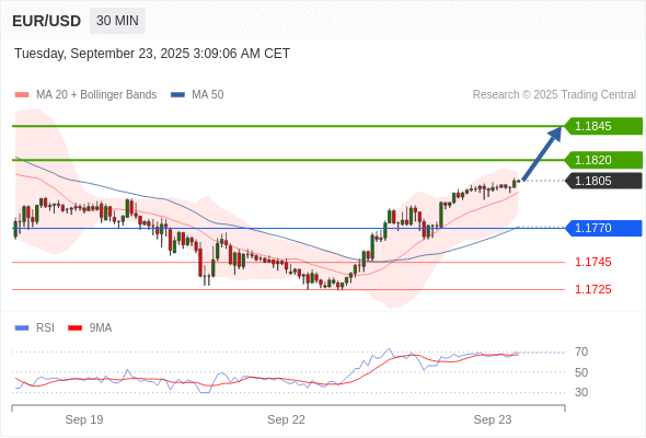 在 1.1770 之上,看涨,目标价位为 1.1820 ,然后为 1.1845 。