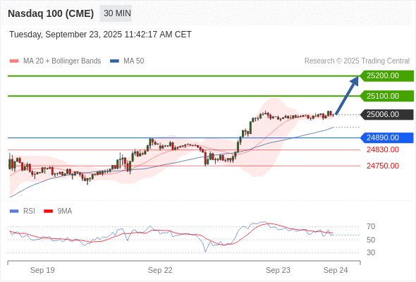 在 24890.00 之上,看涨,目标价位为 25100.00 ,然后为 25200.00 。