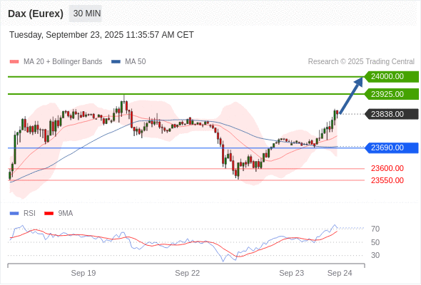 在 23690.00 之上,看涨,目标价位为 23925.00 ,然后为 24000.00 。