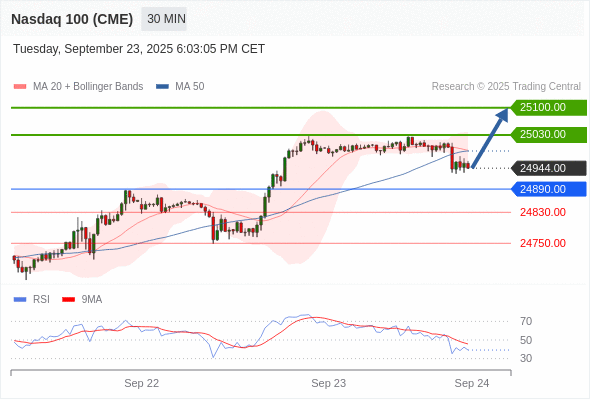 在 24890.00 之上,看涨,目标价位为 25030.00 ,然后为 25100.00 。