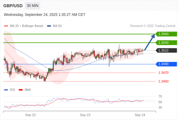 在 1.3490 之上,看涨,目标价位为 1.3540 ,然后为 1.3560 。