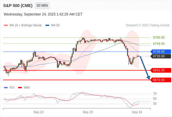在 6728.00 之下,看跌,目标价位为 6691.00 ,然后为 6672.00 。