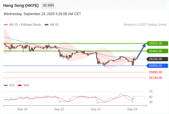 在 26060.00 之上,看涨,目标价位为 26450.00 ,然后为 26650.00 。