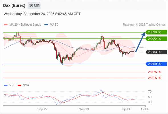 交易策略: 在 23560.00 之上,看涨,目标价位为 23822.00 ,然后为 23890.00 。